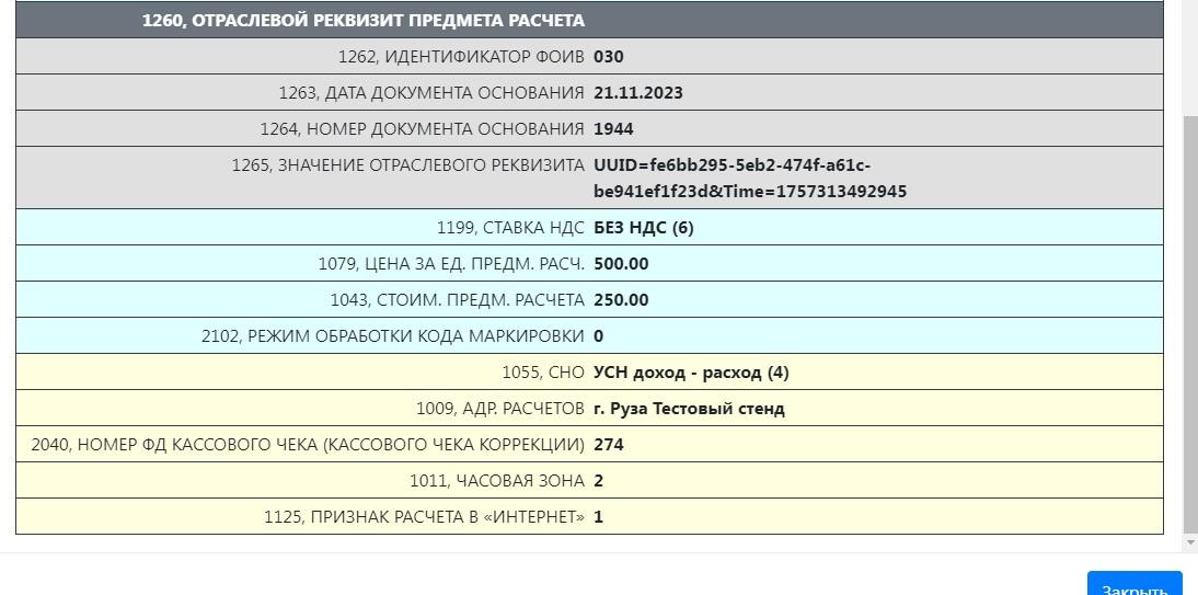 Блин... Значит опять мои ККСники накосячили... Была ошибка, передавался 1125 со значением 0 в уведомление. В последней прошивке вроде поправили, теперь не передается тег вообще, если значение 0. Но!!! По тем чекам, когда он еще передавался с нулем, проверил, тег есть только в уведомлении, в чеке его нет. Не знаю, может, если пихнуть туда 1, то он передастся и туда и туда, и ошибка была только в уведомлении... Экспериментировать лень. Пусть сами разбираются, у меня нет интернет торговли, кому это нужно - найдут(возможно :-) ) ошибку, и сами укажут на это разработчикам. Мне уже надоело быть для них "бесплатным бета-тестером", что меня непосредственно касается, я конечно буду продолжать выявлять косяки и указывать им на них, а то, что мне не нужно - пусть разбираются с теми, кто это использует... |
