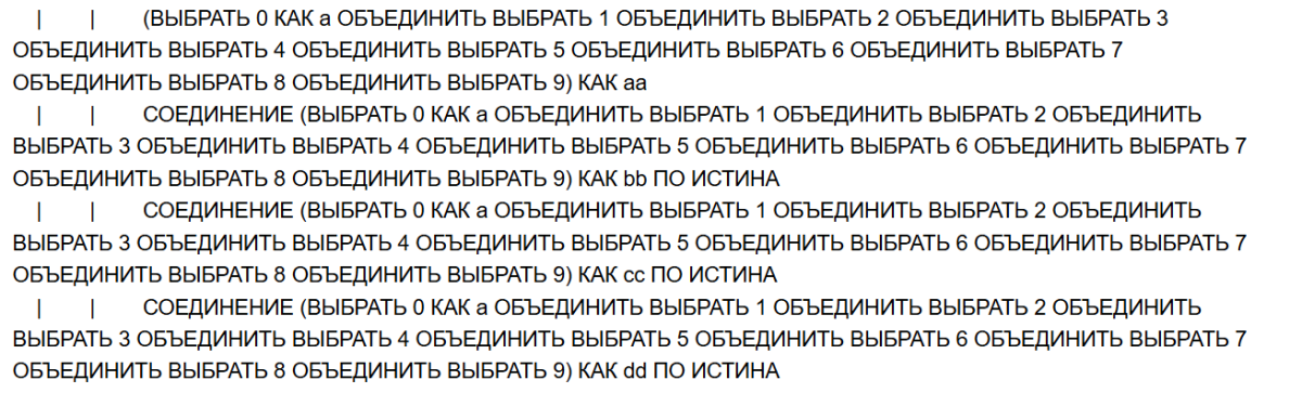 (22) Геннадий, сделайте временную таблицу из ваших ВЫБРАТЬ 0...9
