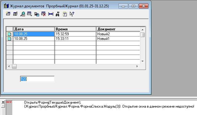 если же в этом же журнале этот же код выполнять из кнопки - всё ок.