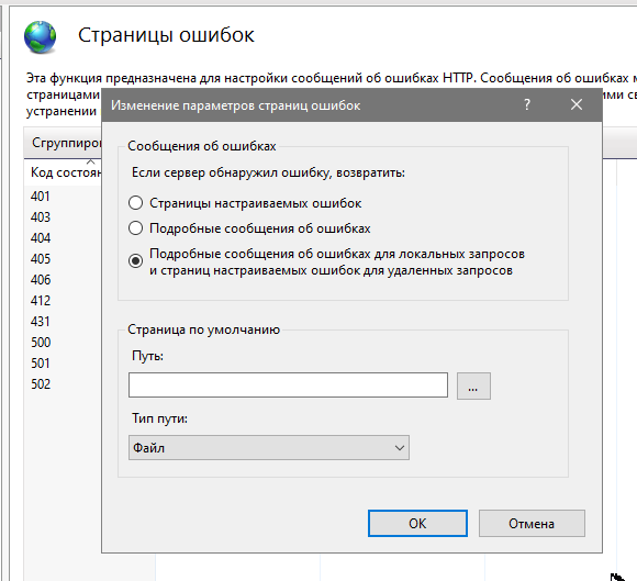 для начала включить прокидывание ошибок. на iis это можно сделать на уровне сайта в разделе Страницы ошибок вот тут: